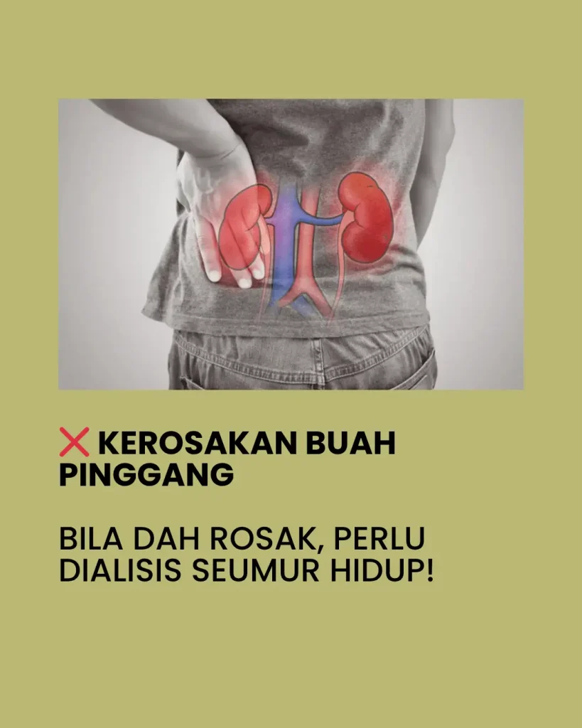 PERTAMA :Teruskan je hidup dengan bacaan gula, darah tinggi & jantung yang makin hari makin naik. Terus makan ubat kimia — badan makin lemah, risiko buah pinggang rosak. Kalau dah kena strok, dah terlantar — baru nak menyesal, dah terlambat!