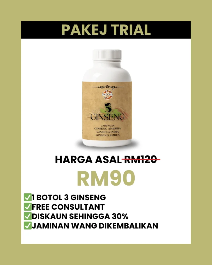 PERHATIAN: Promosi Ini Hanya Sah Di Laman Web Rasmi 3 Ginseng Sahaja. PROMOSI TAMAT BILA BILA MASA!