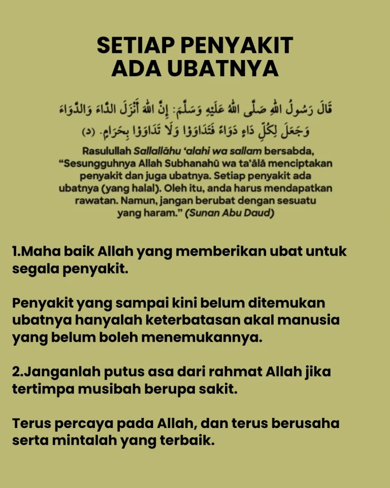 JANGAN PUTUS ASA! kita sakit kerana kehendak-Nya, Maka percayalah kita juga akan sembuh dengan izin-Nya”