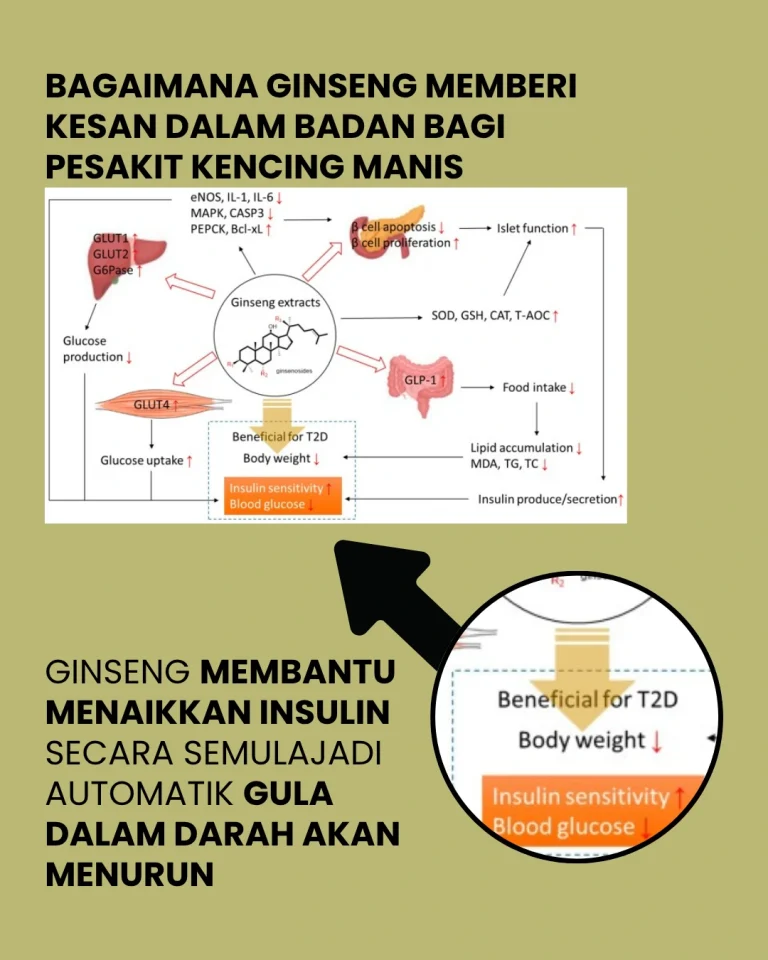 RUJUKAN KAJIAN:Liu Y, Yang S, et al. Effects of ginseng on type 2 diabetes mellitus: A meta-analysis of randomized controlled trials. Journal of Diabetes. 2016
